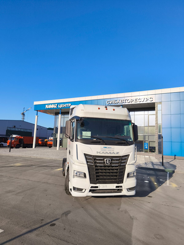 Седельный тягач, Евро-5, колесная формула 4х2, двигатель КAMAZ P6 910.52-460, мощность 355 кВт, РКПП F12JZ24DD, нагрузка на ССУ 10,35 т., кабина высокая, широкая 2500 мм, с ровным полом, на пружинной подвеске, кондиционер, 2 спальных места, ПЖД, задний мост Hande HDZ на пневмоподвеске, передняя ось КАМАЗ, МКБ, ECAS, EBS, ASR, ESP, электронасос МОК, ИТИС, мультимедиа БИС, топливные баки 700+600 л., высота ССУ 1150, тахограф с блоком СКЗИ, шины 315/70R22.5, 2023 г.в.